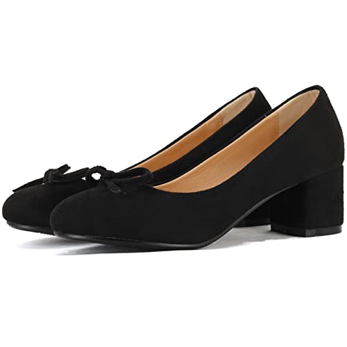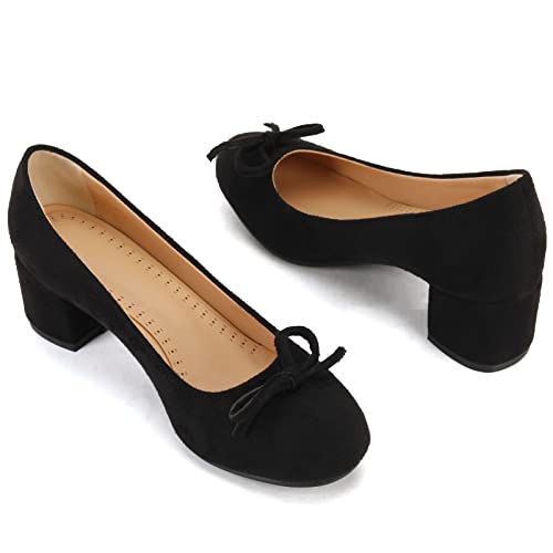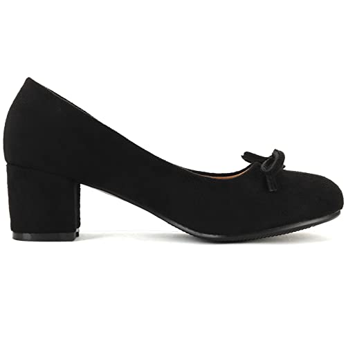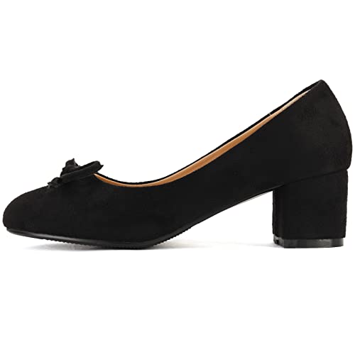 Specification: Smilice Eenvoudige damespumps met gemiddelde blokhak en strikken ronde teen-loafer